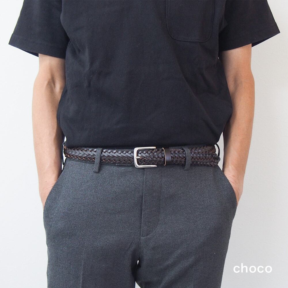 仕様:約4mm幅の牛革を 8本編みでしっかり編み込んで メッシュベルトに仕上げました。