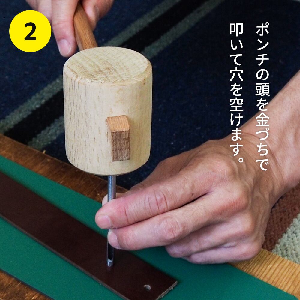 2.ポンチの頭を金づちで叩いて穴を空けます。