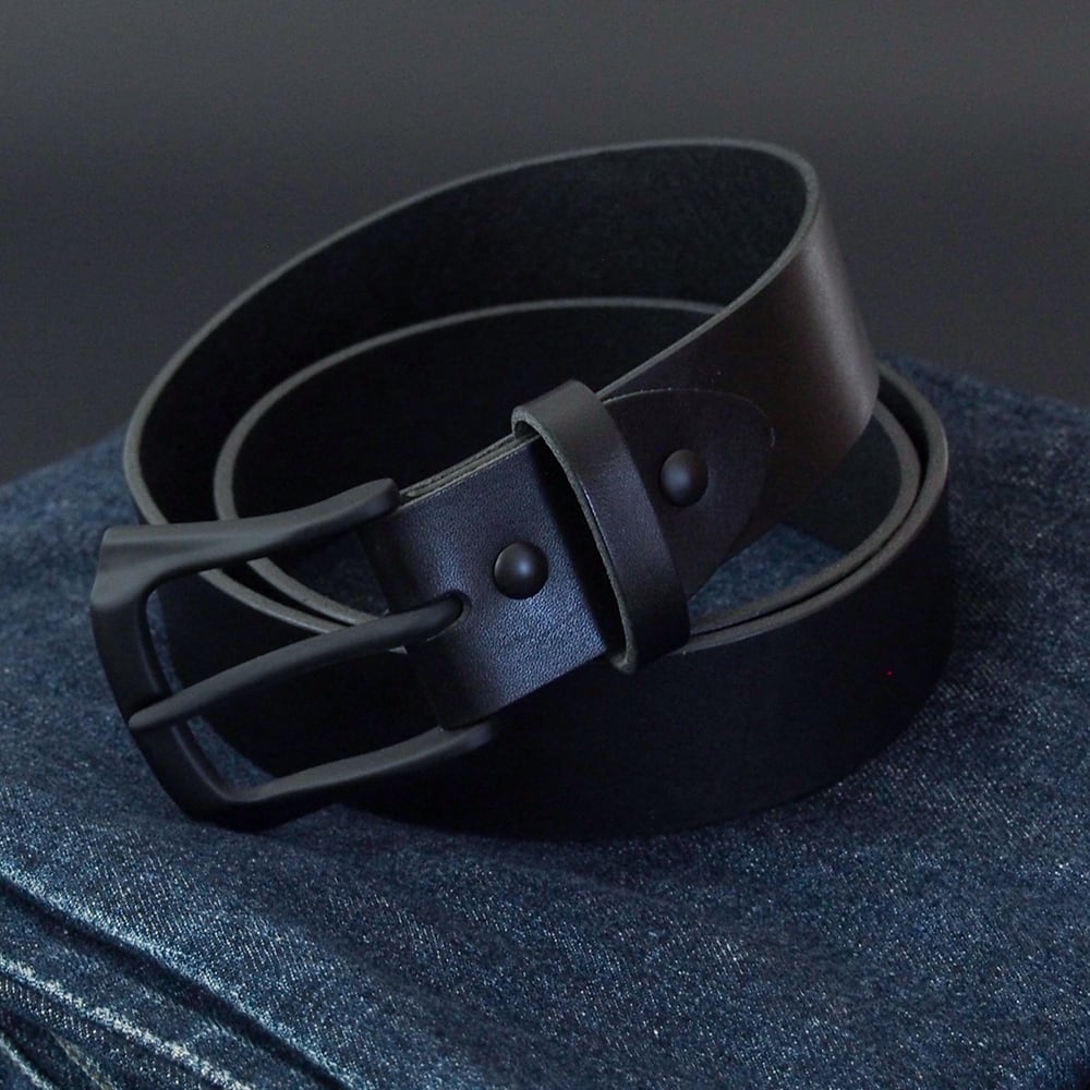 すべて黒 がスタイリッシュな本格派の牛革ベルト。