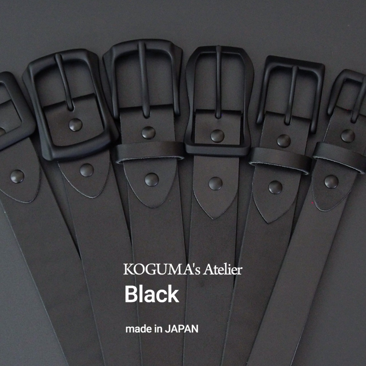 すべて黒 がスタイリッシュな本格派の牛革ベルト。