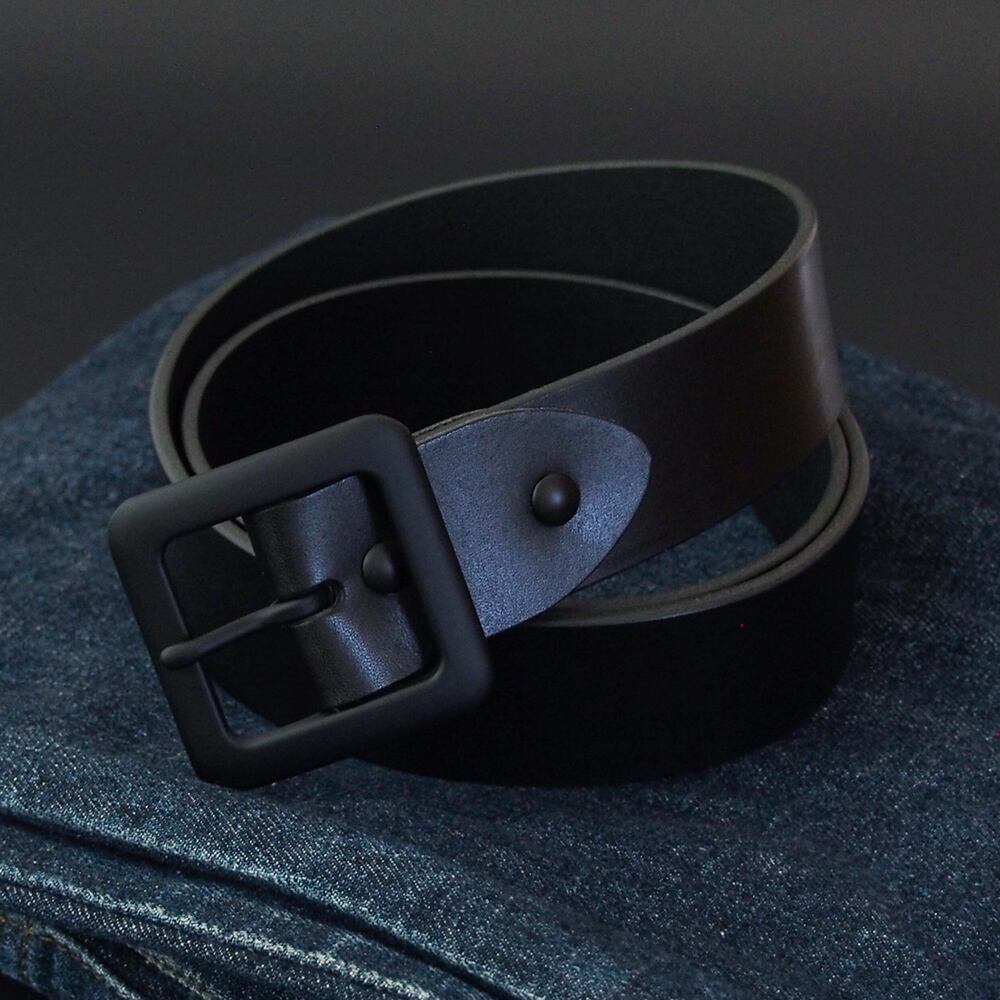 すべて黒 がスタイリッシュな本格派の牛革ベルト。